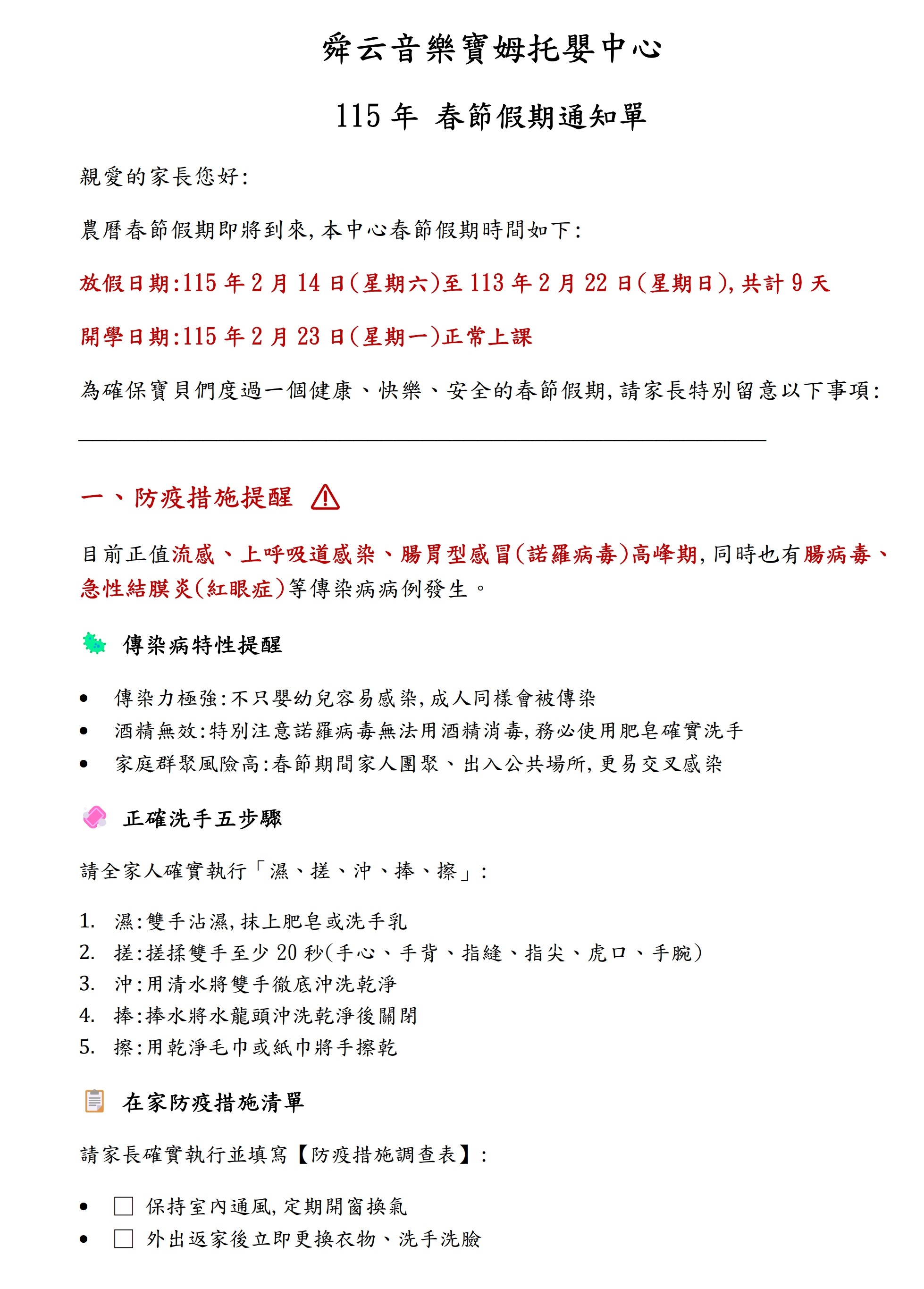 115年春節假期通知單